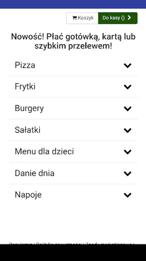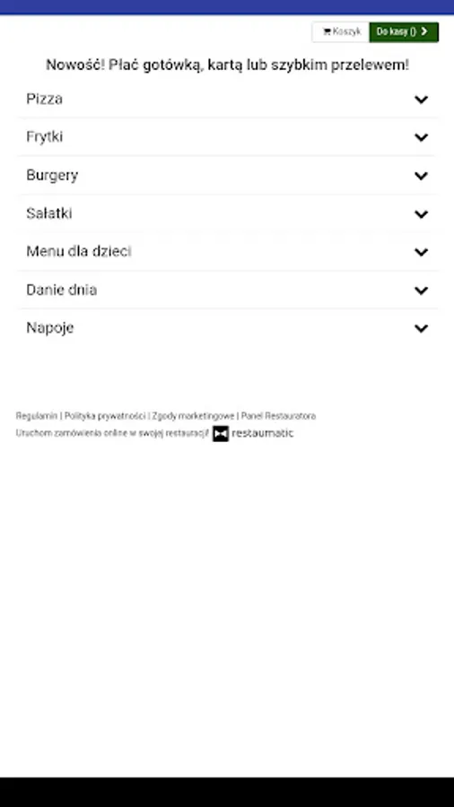 An application for ordering food from the Pizzeria Palomino restaurant in Chmielnik.