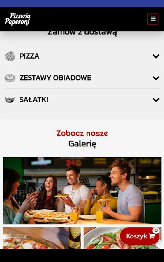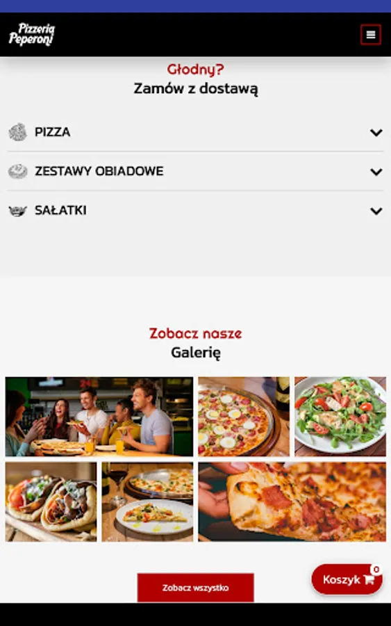 Application for ordering food from Pizzeria Peperoni restaurant in Wielgie.