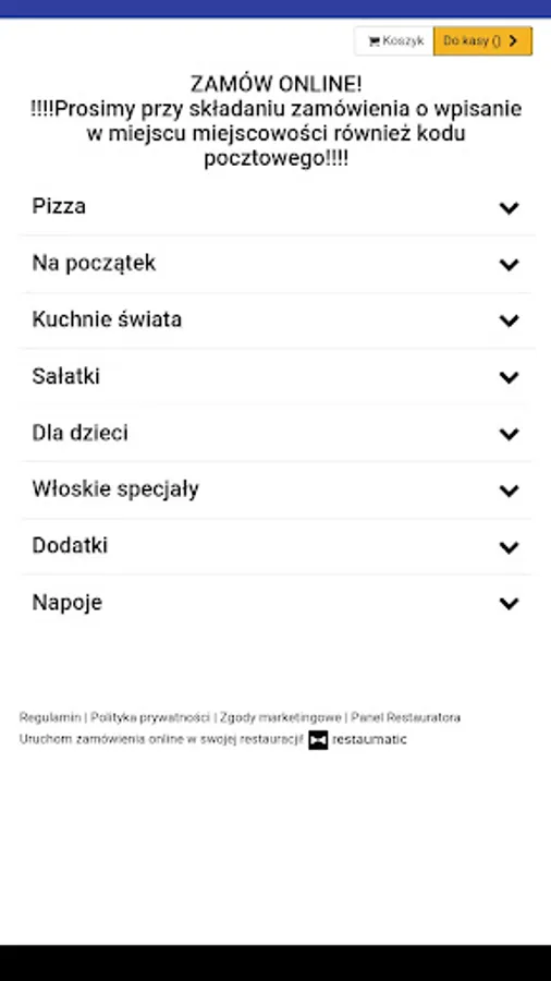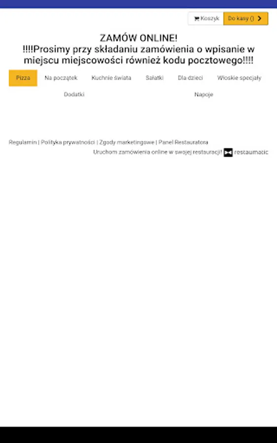 An application for ordering food from the Pizzeria Ramzes restaurant in Nowy Tomyśl.