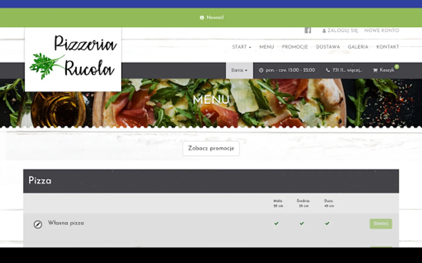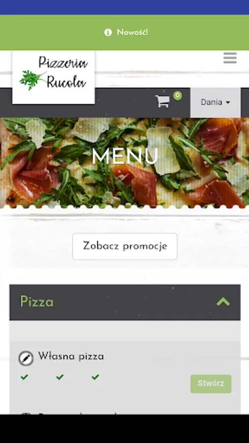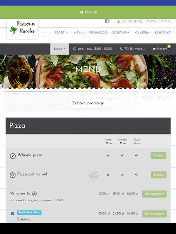 Application for ordering food from the Pizzeria Rucola restaurant in Wrocław.