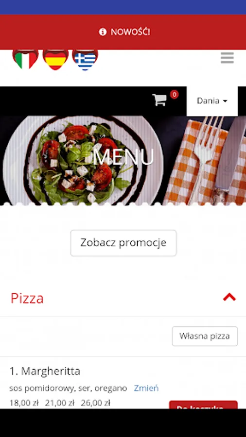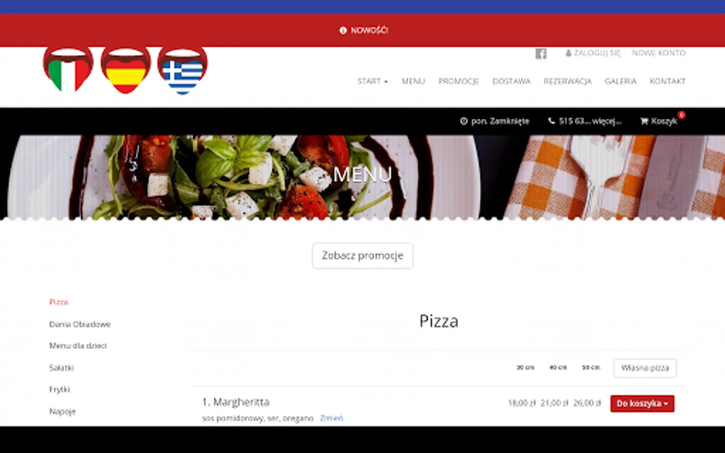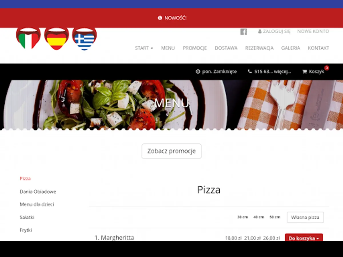 Application for ordering food from the Pizzeria Smaki Świata restaurant in Suchoraba.
