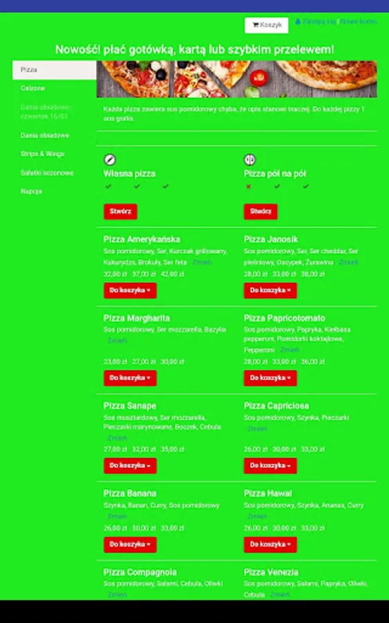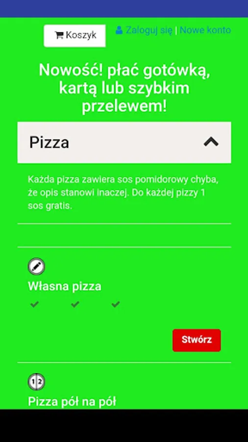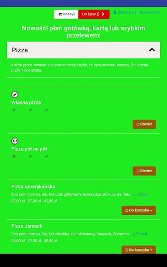Application for ordering food from the Three Brothers restaurant in Węgrów.