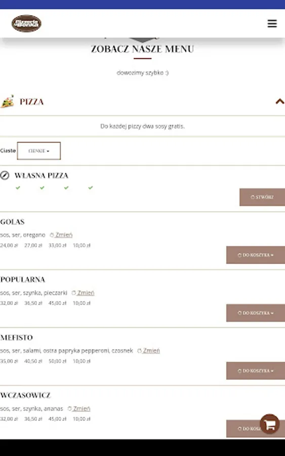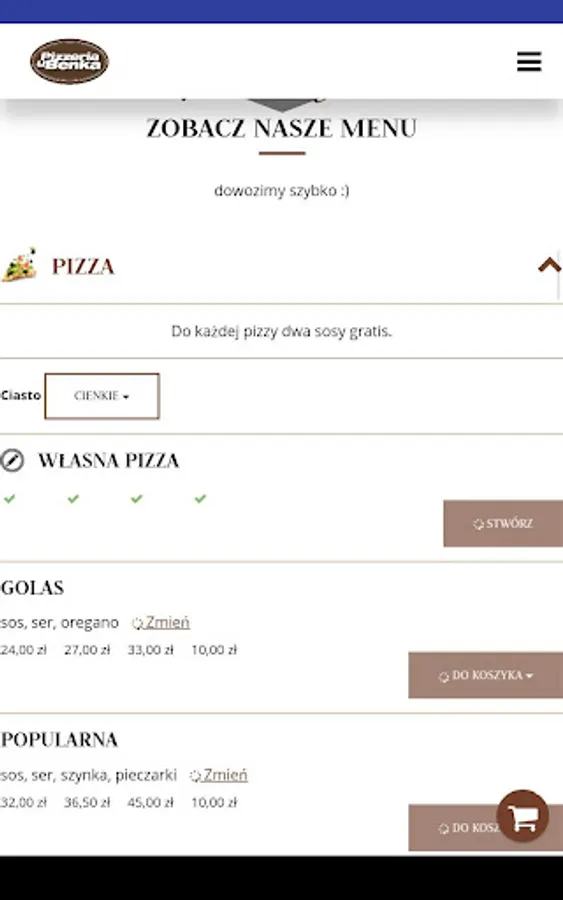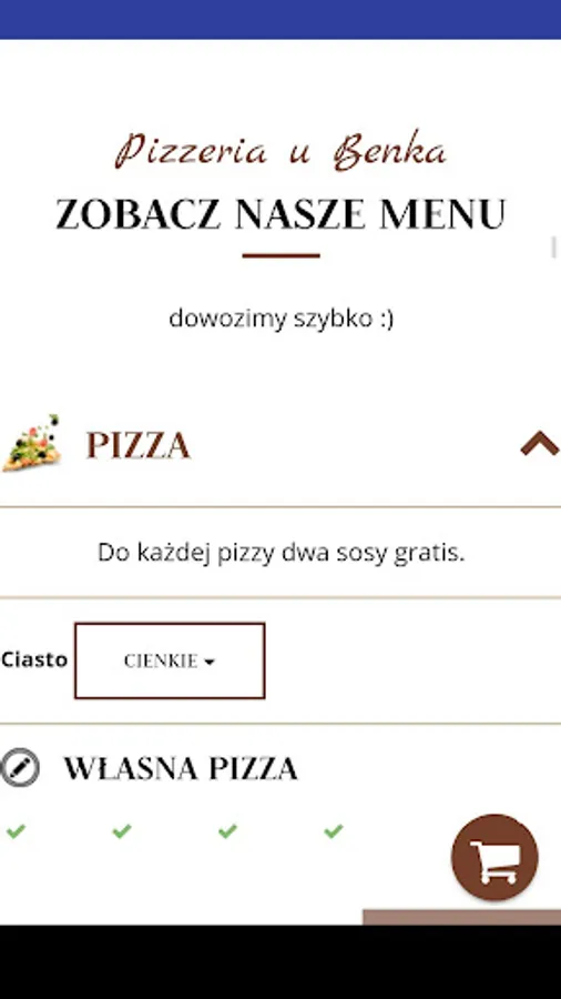 Application for ordering food from the Pizzeria u Benka restaurant in Elbląg.