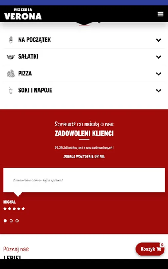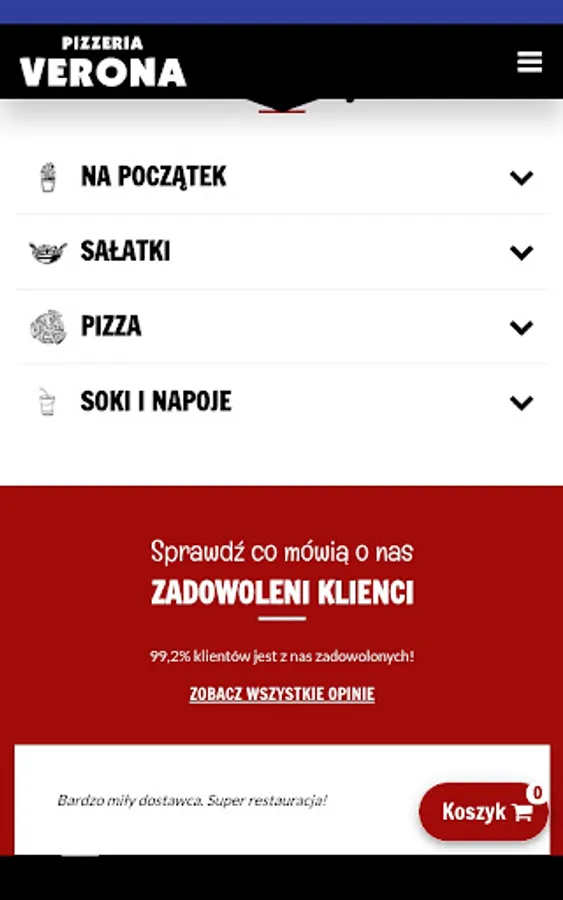 Application for ordering food from the restaurant Pizzeria Verona in Siedlce.