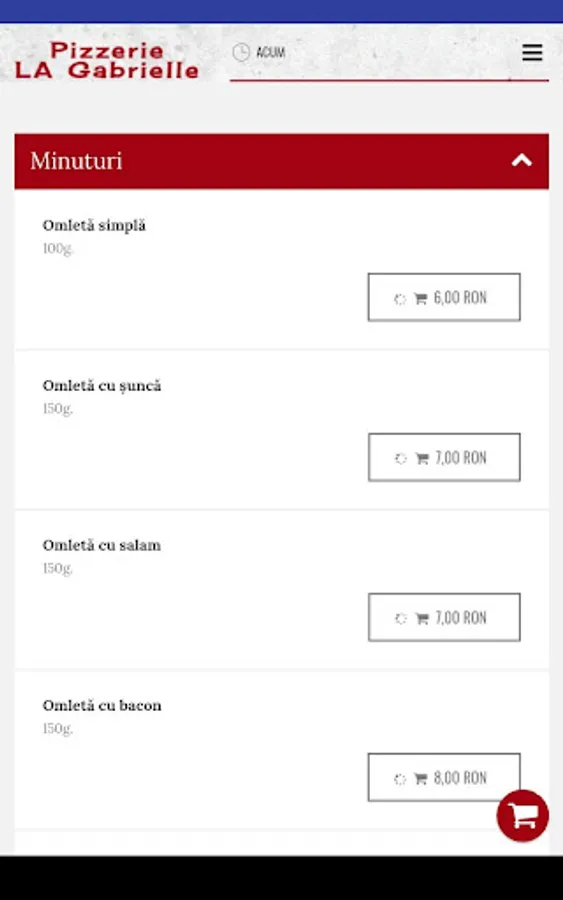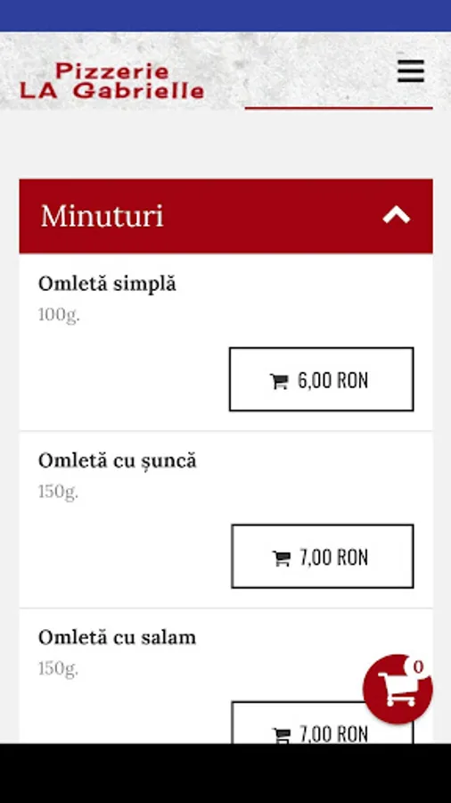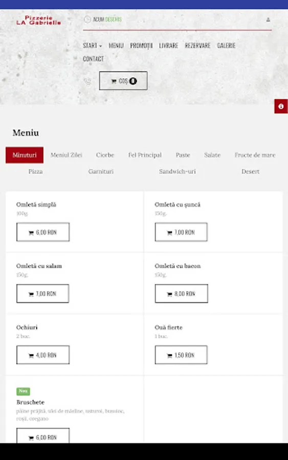 Food order form at Pizzerie LA Gabrielle restaurant.