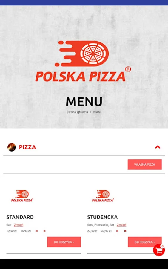 Application for ordering food from the Polska Pizza restaurant in Bydgoszcz.