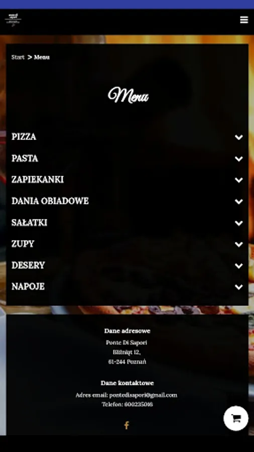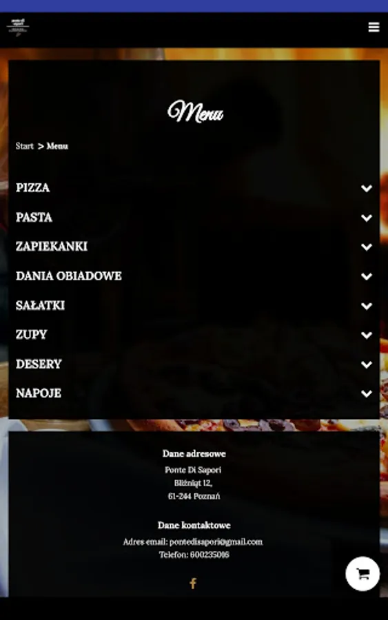 An application for ordering food from the PONTE DI SAPORI restaurant in Poznań.