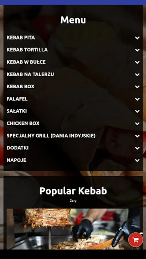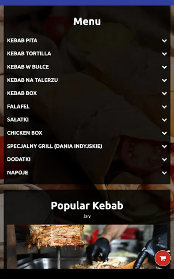 An application for ordering food from the Popular Kebab restaurant in Żary.