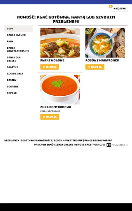 An application for ordering food from the Prosto restaurant - homemade food in Olsztyn.