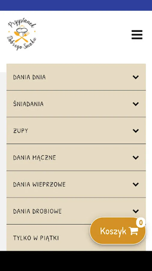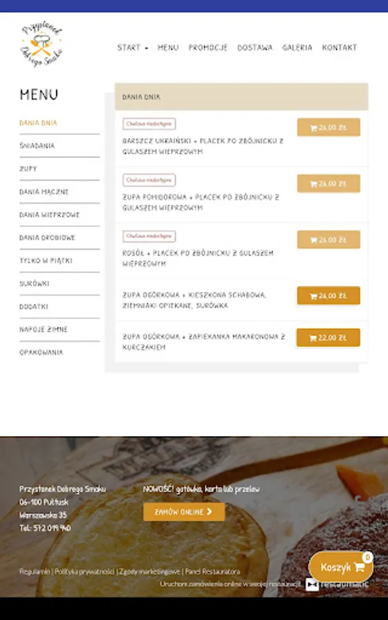 Application for ordering food from Przystanek Dobrego Smaku restaurant in Pułtusk.