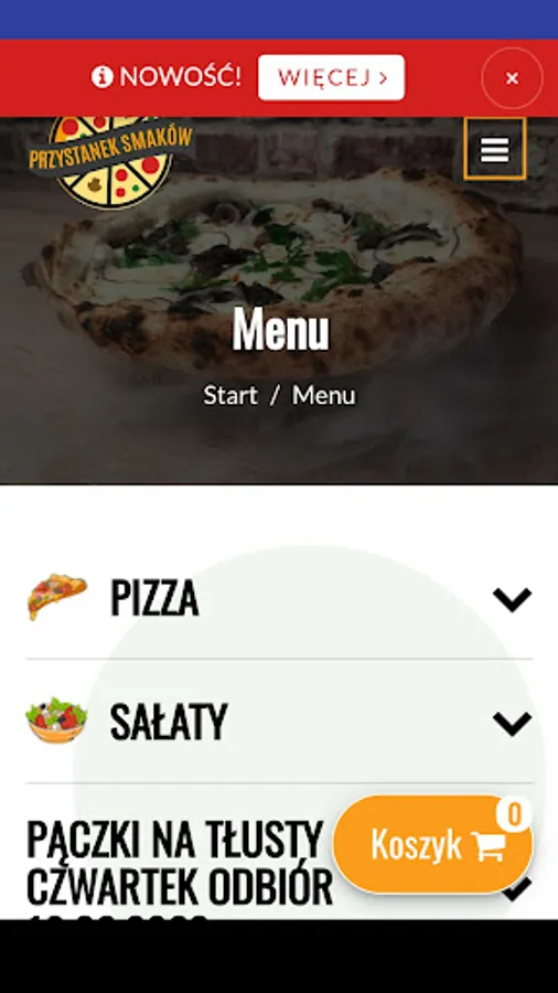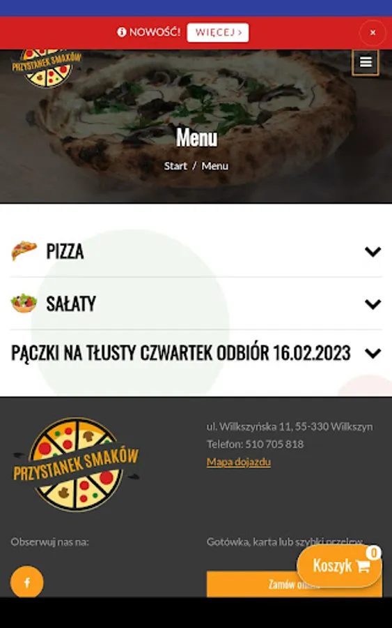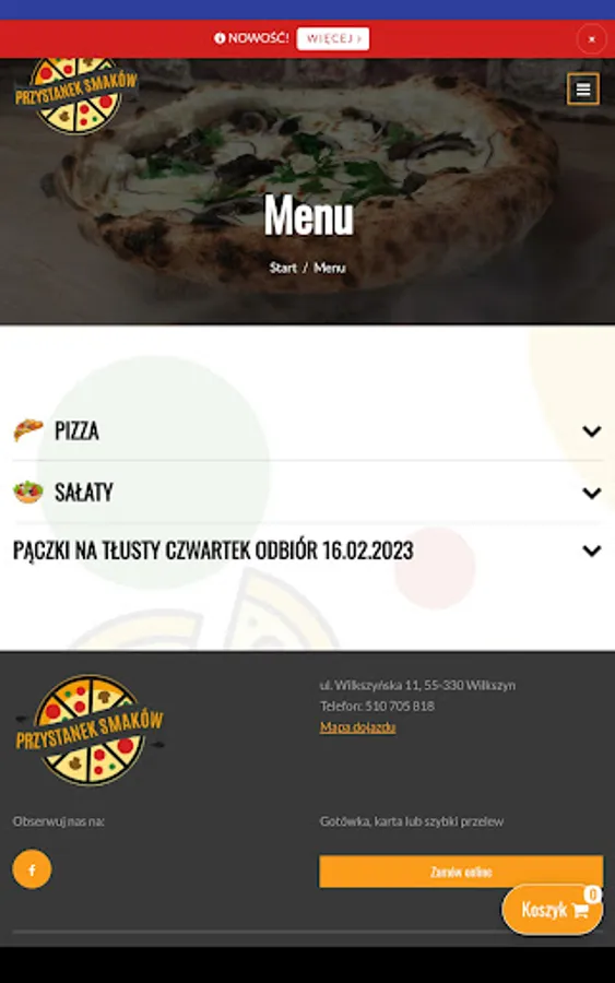 Application for ordering food from Przystanek Smaków restaurant in Wilkszyn.