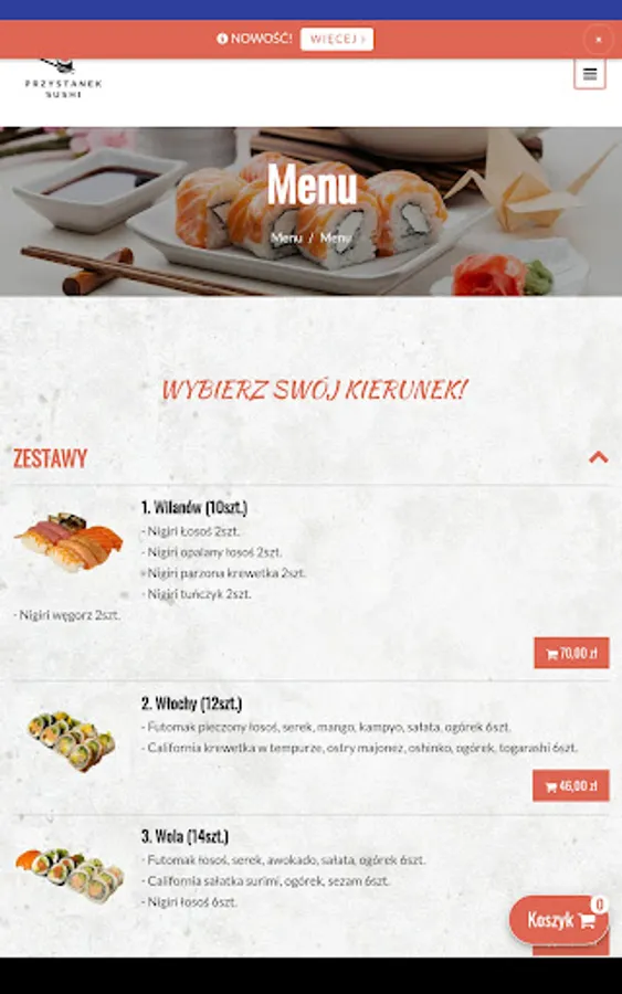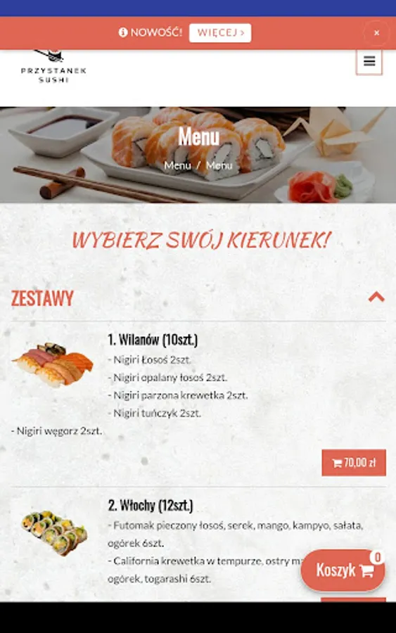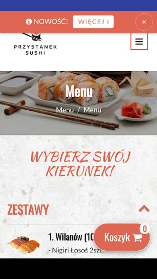An application for ordering food from the Przystanek Sushi restaurant in Warsaw.