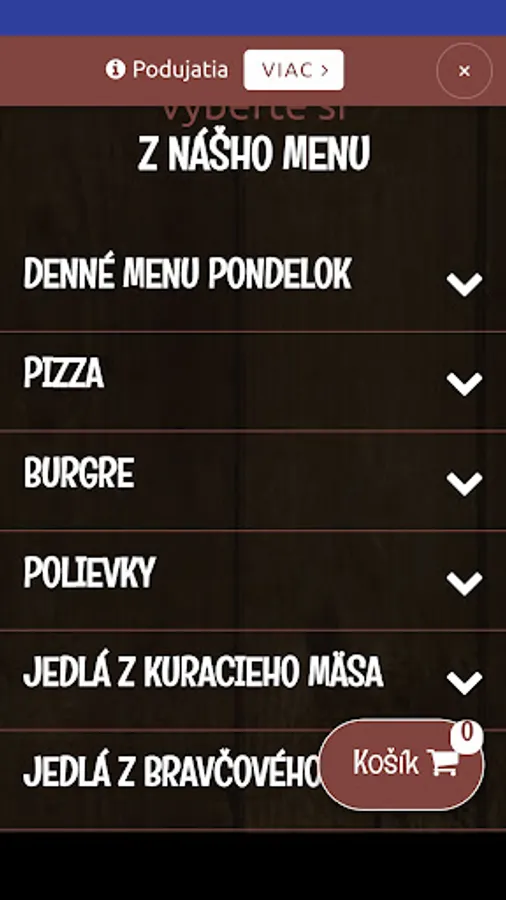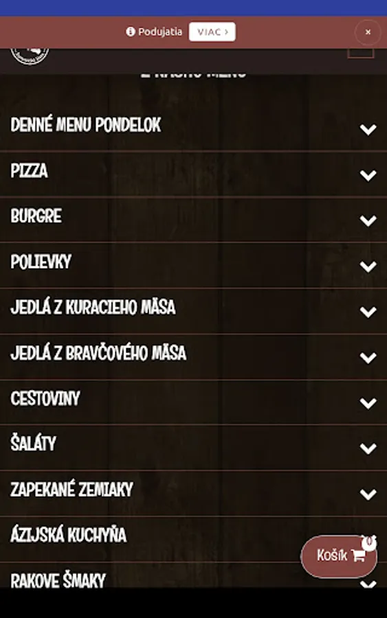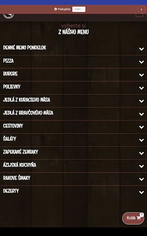 Mobile application to order food directly from the restaurant Pub u Raka.