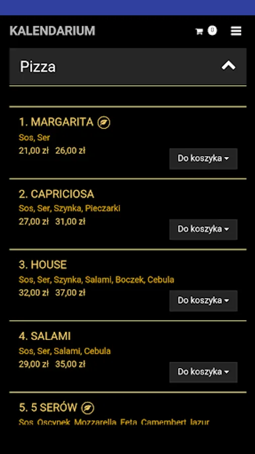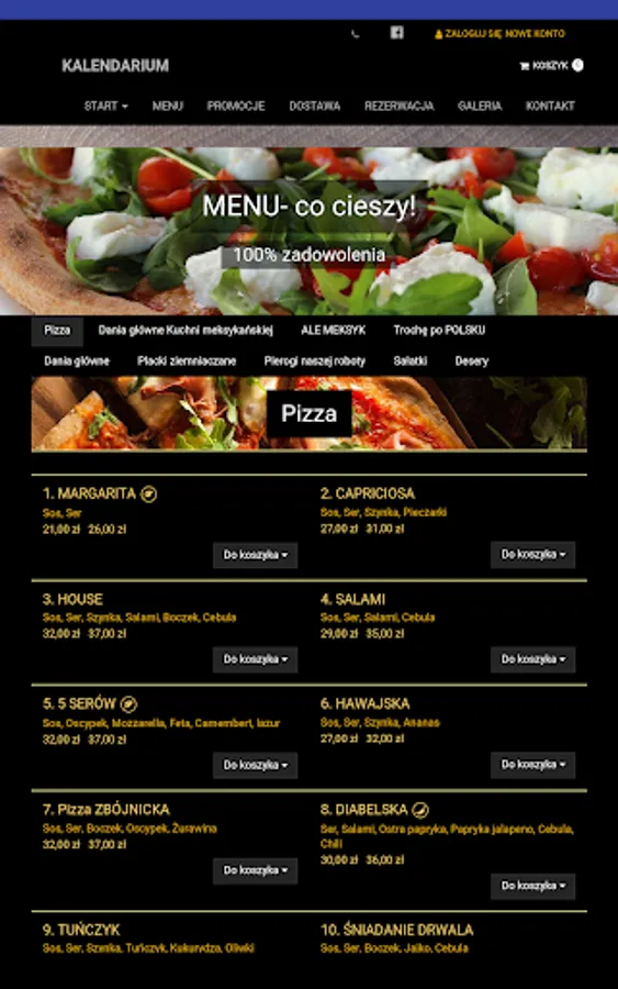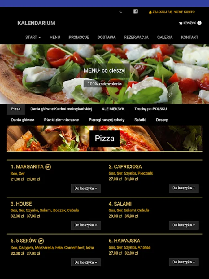 Application for ordering food from the Kalendarium restaurant from Czechowice-Dziedzice.