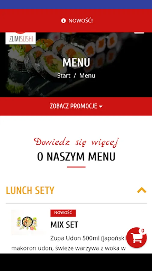 Application for ordering food for delivery from the Zumi Sushi restaurant in Płock. Japanese restaurant - Płock and neighboring towns (delivery zones). Install the application and order sushi directly from the app. This method of ordering food guarantees the fastest order processing. Food ordered through the application goes to us immediately. Restaurants Płock with Asian cuisine.