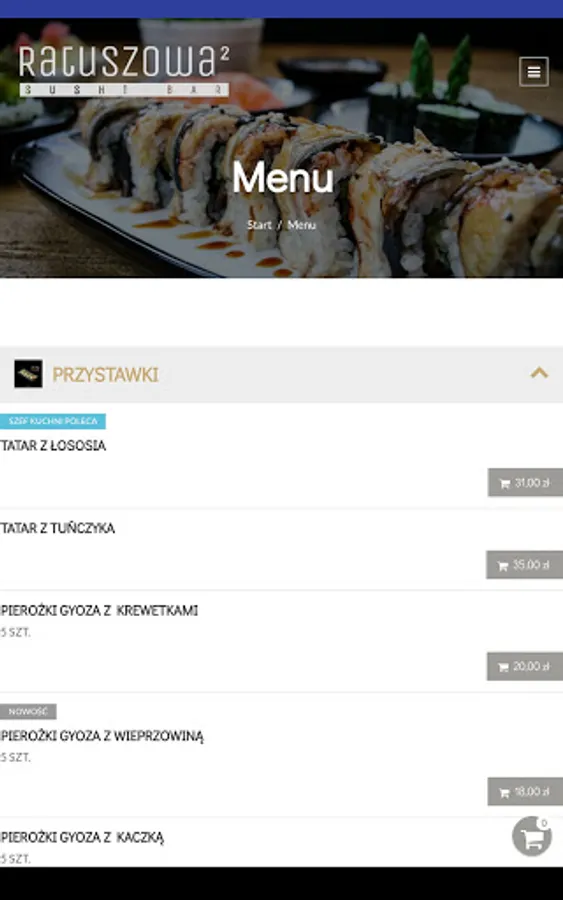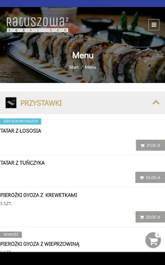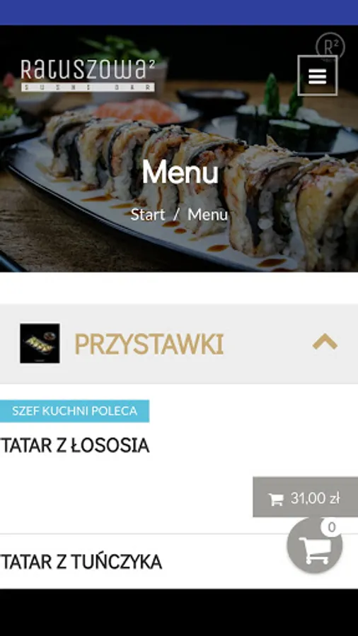Application for ordering food from Ratuszowa 2 Sushi Bar restaurant in Rawicz.