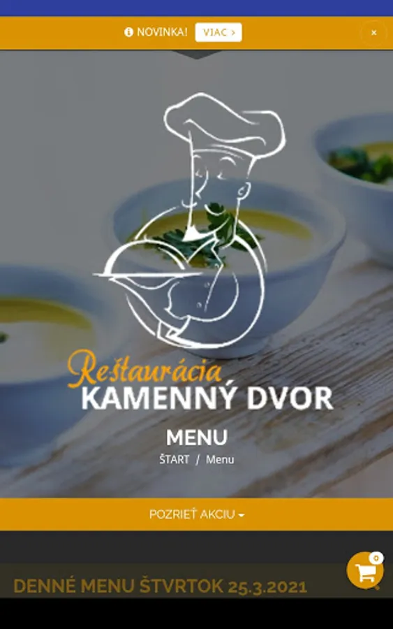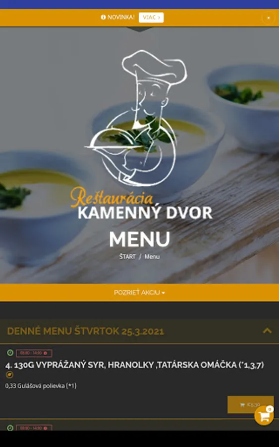 Mobile application to order food directly from the Kamenný Dvor restaurant.