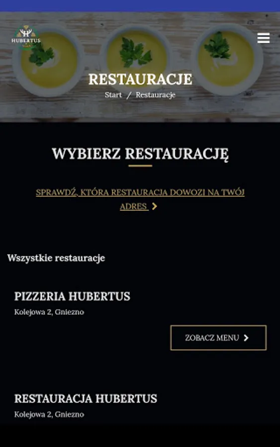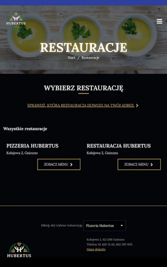Application for ordering food from the Hubertus restaurant in Gniezno.