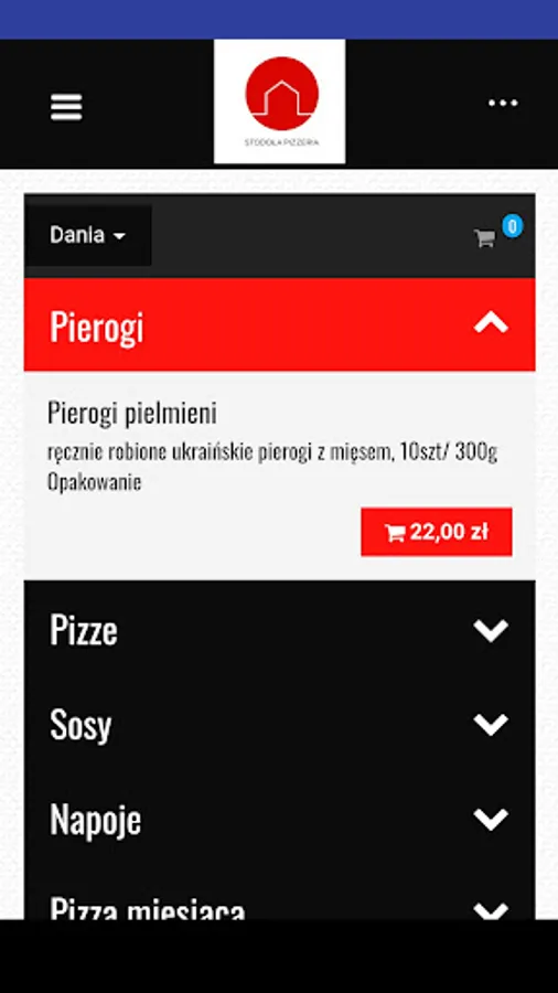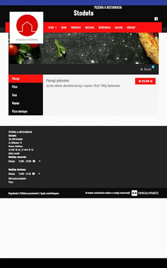 Application for ordering food from the Stodoła restaurant in Krakow.