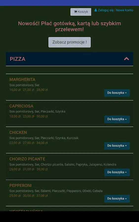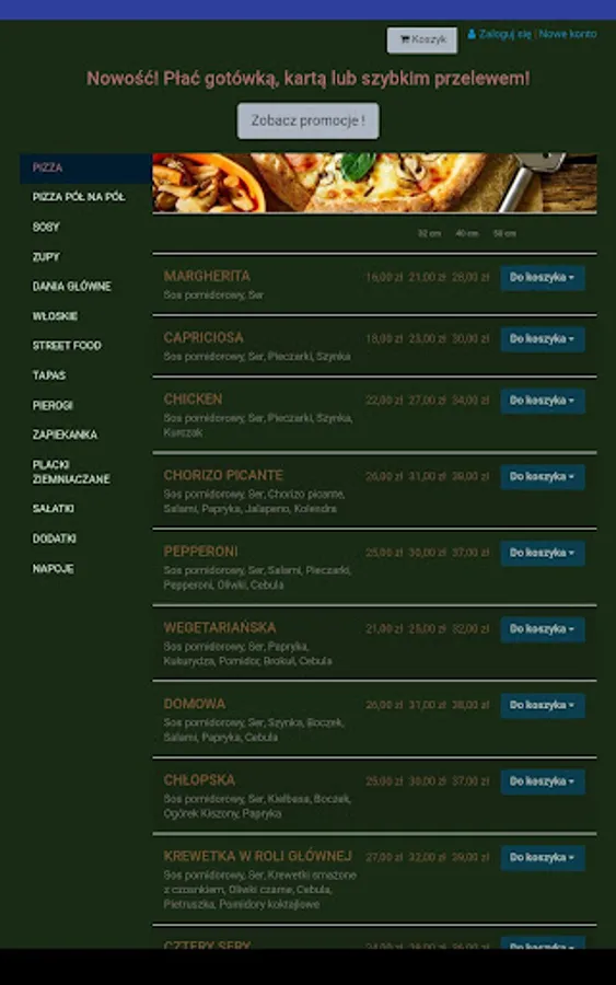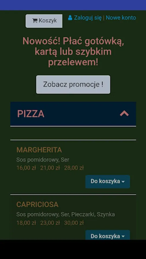Application for ordering food from the Strzecha restaurant in Nowa Wieś.
