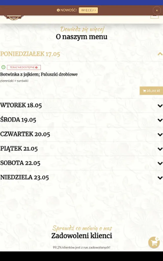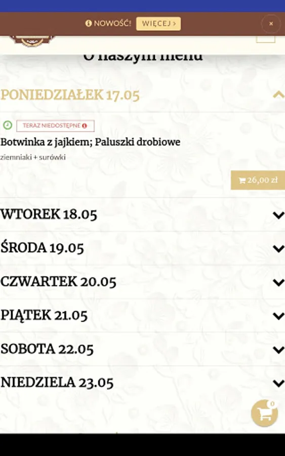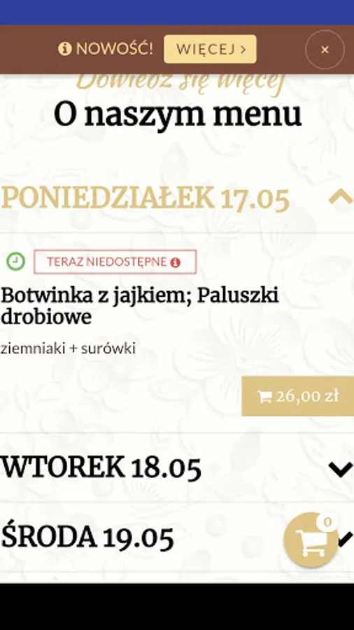 The app for ordering food from the Tiffany restaurant in Nysa.