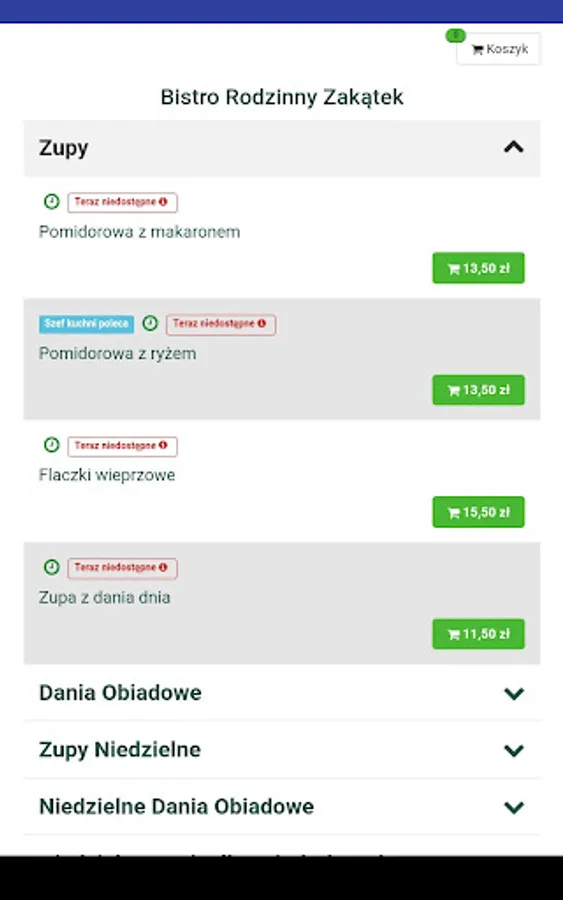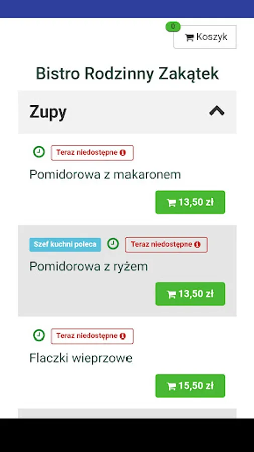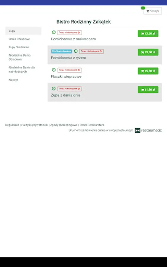 Application for ordering food from the Family Corner restaurant in Zalasewo.