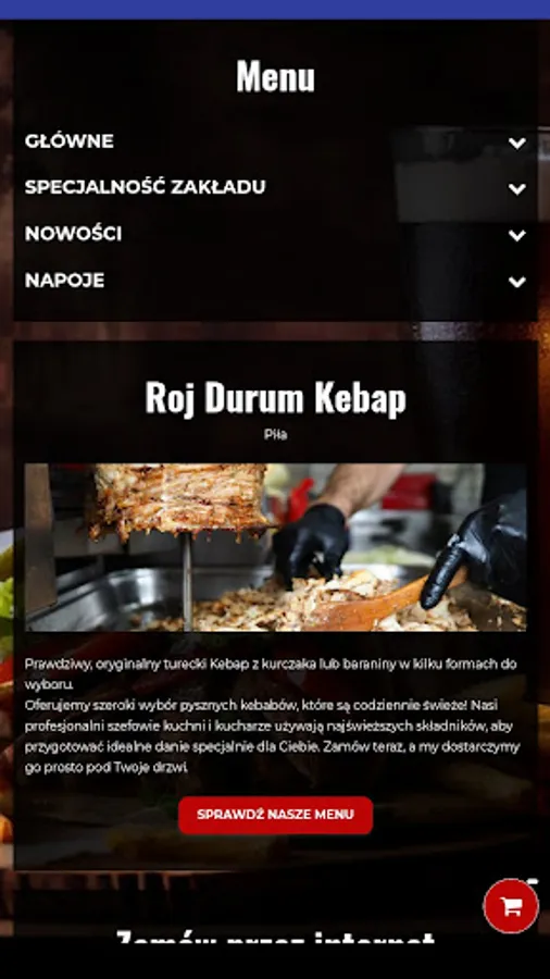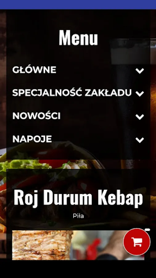 Application for ordering food from the Roj Durum Kebap restaurant in Piła.