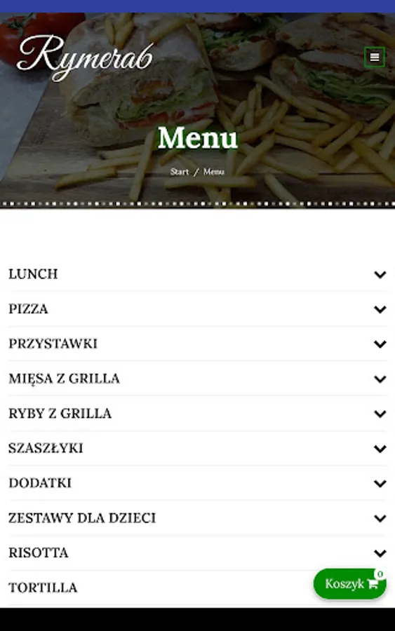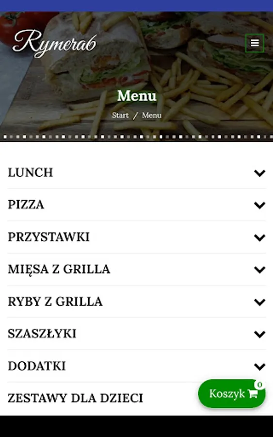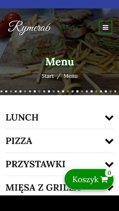 Application for ordering food from the Rymera 6 restaurant in Tarnowskie Góry.