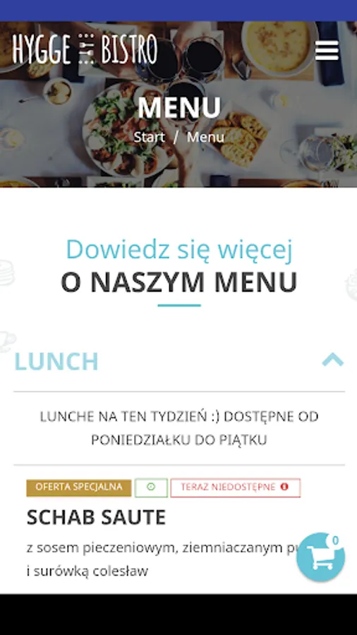 Application for ordering food from Bistro Hygge restaurant in Krakow.