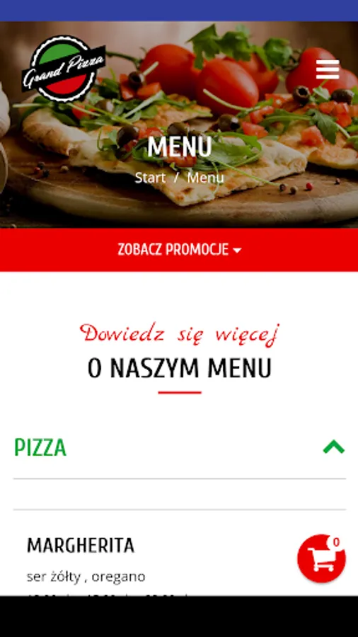 Application for ordering food from the Grand Pizza restaurant in Ostrów Wielkopolski