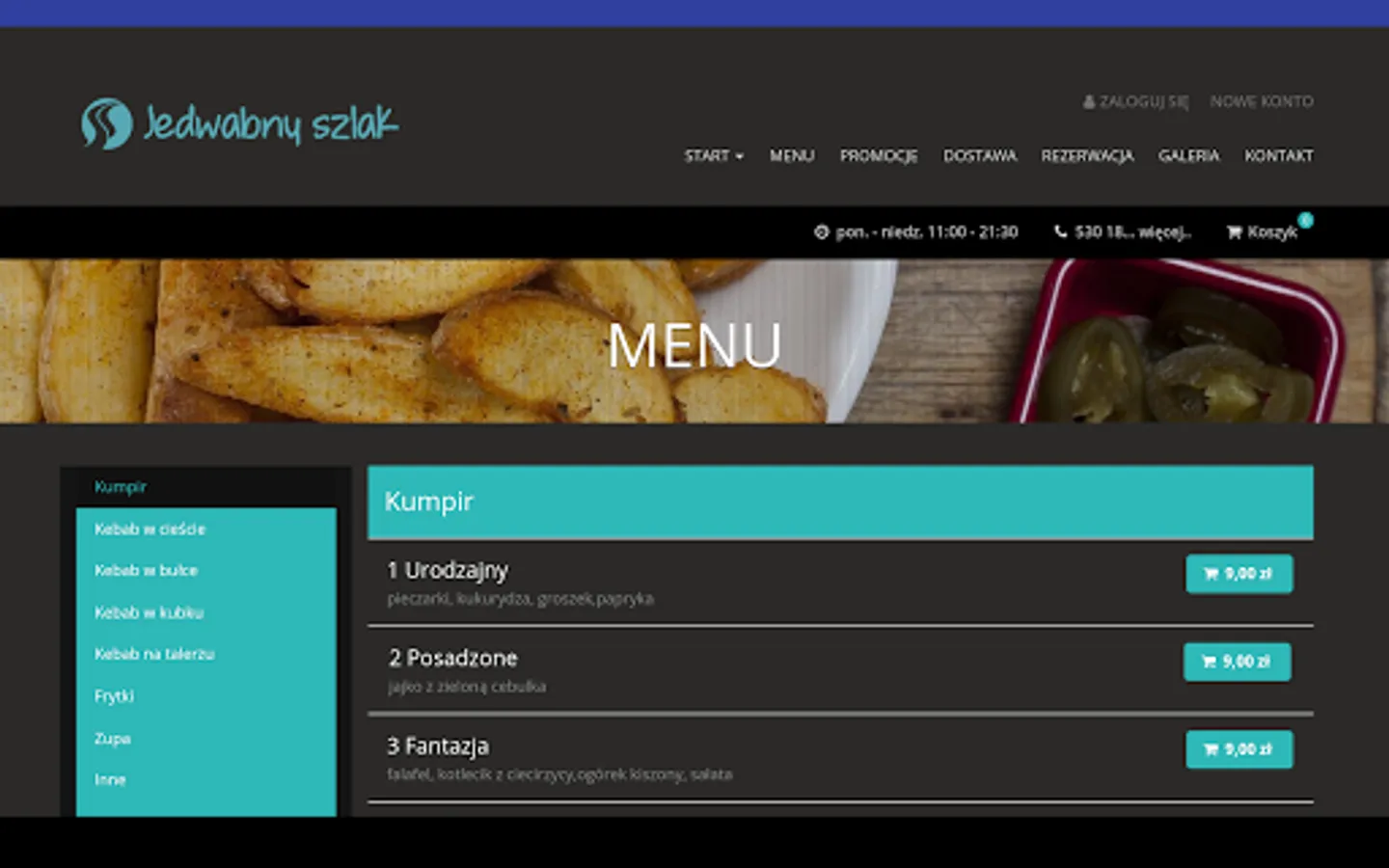Application for ordering food from the Jedwabny Szlak restaurant in Bielsko-Biała
