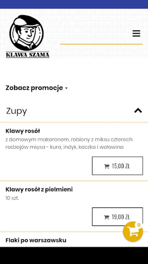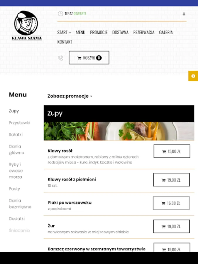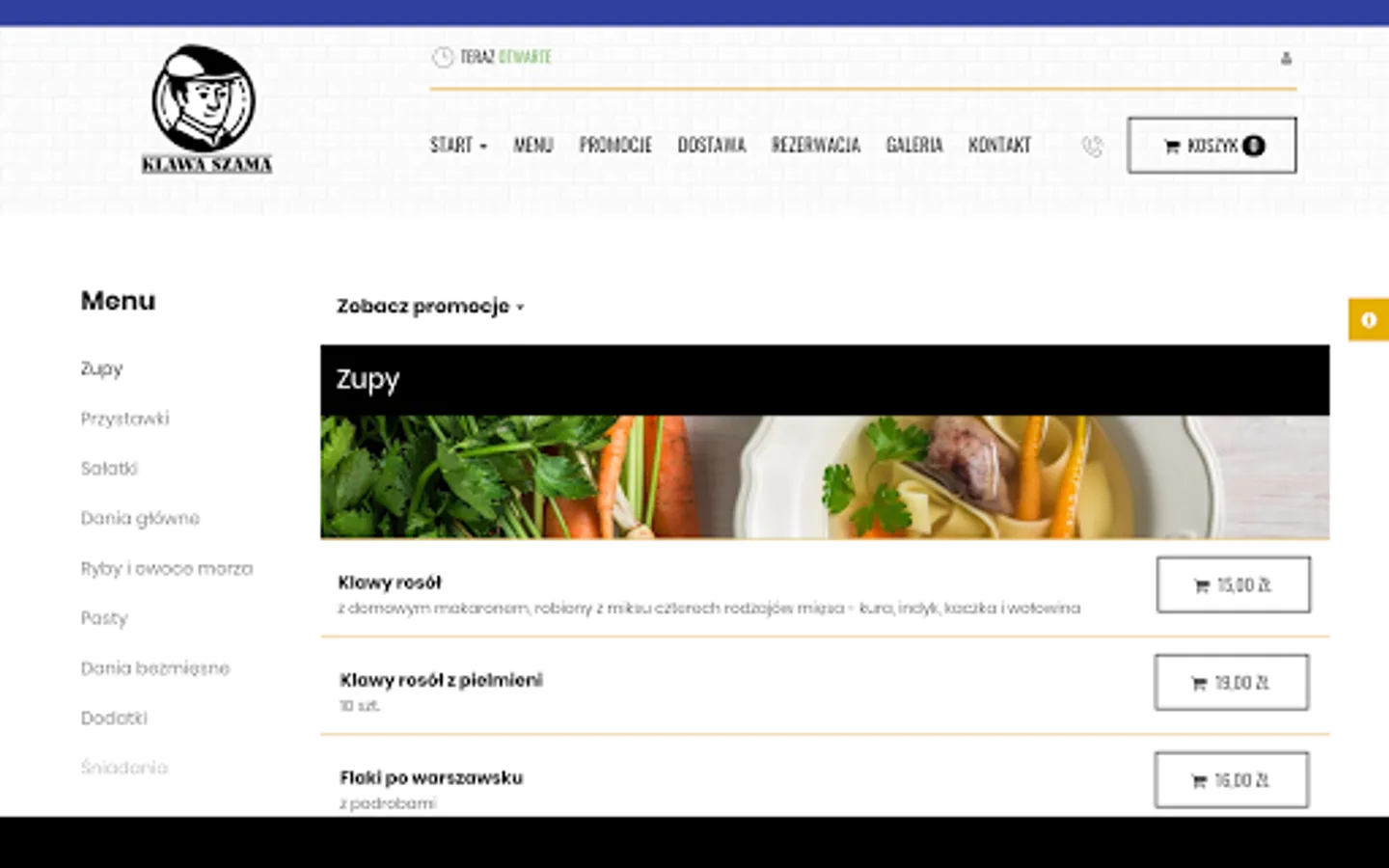 Application for ordering food from the Klawa Szama restaurant in Warsaw