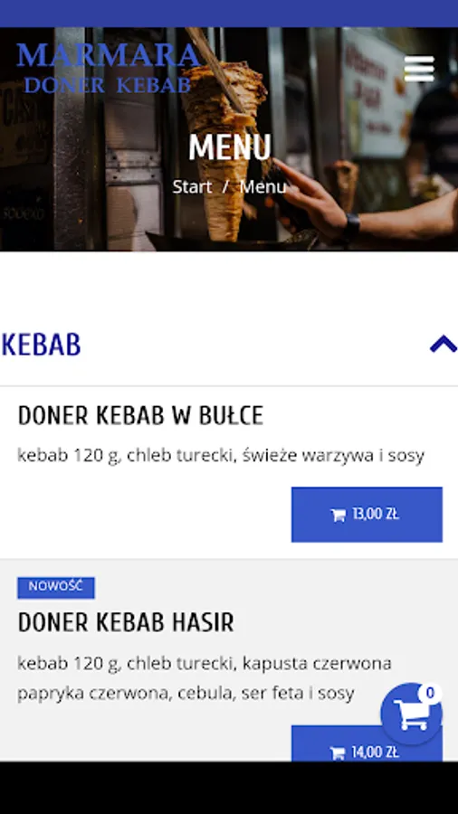 Application for ordering food from Marmara Doner Kebab restaurant in Elbląg.