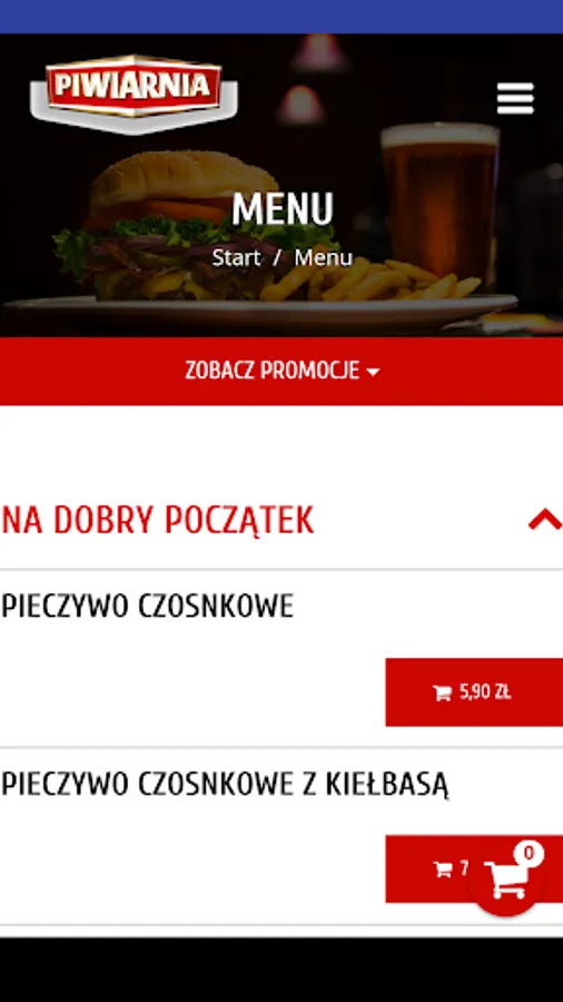 Application for ordering food from the Piwiarnia Warecka restaurant in Przemyśl.