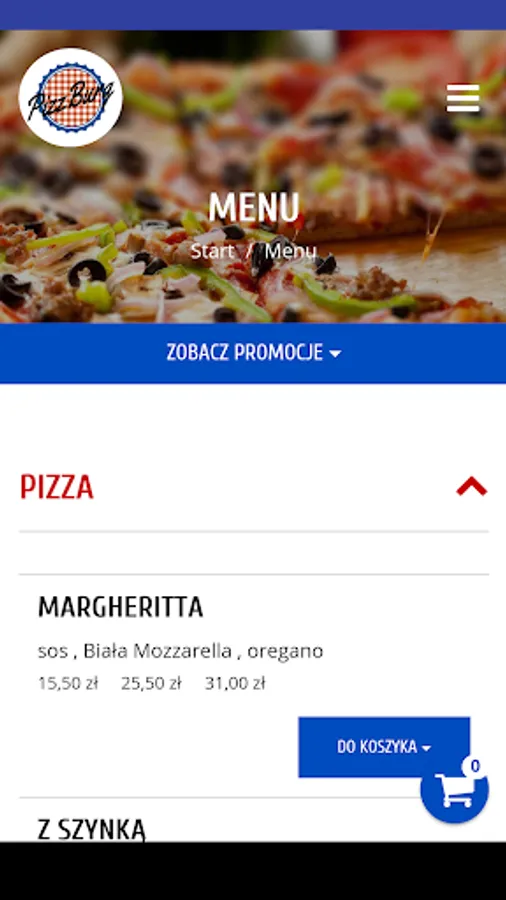 Application for ordering food from the Pizzburg restaurant in Warsaw