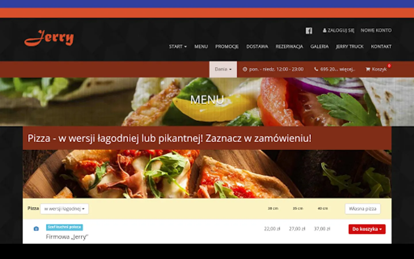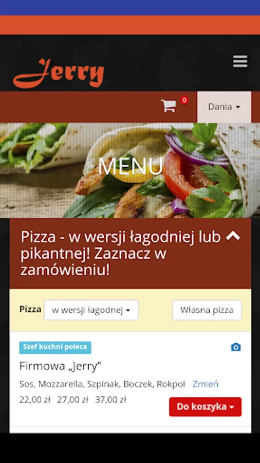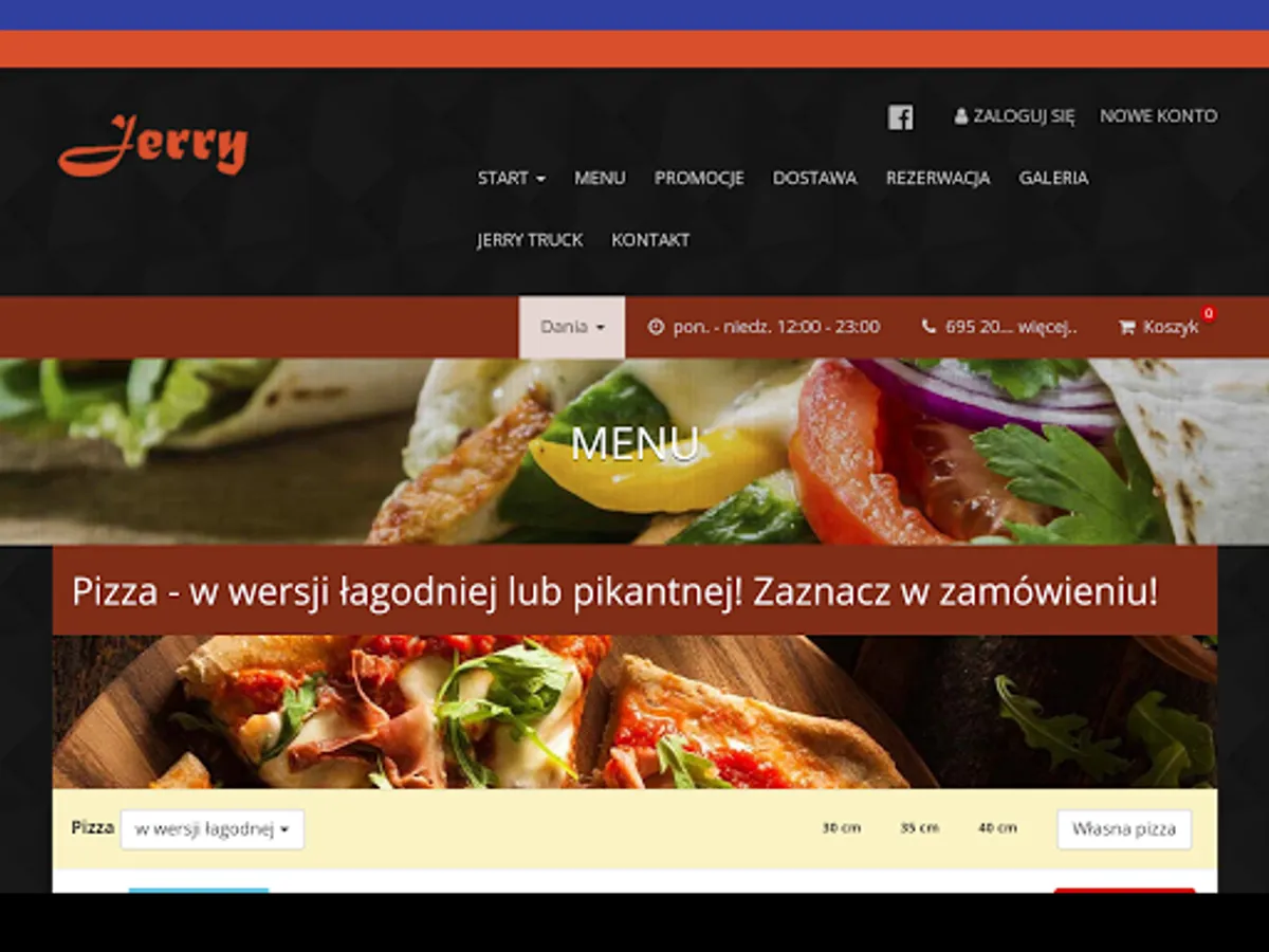 Application for ordering food from the Pizzeria Jerry restaurant in Ożarow Mazowiecki.