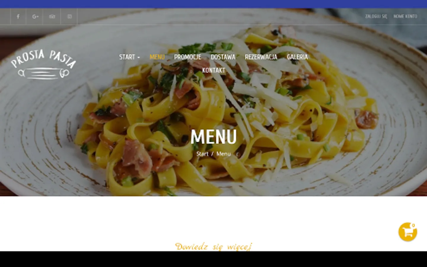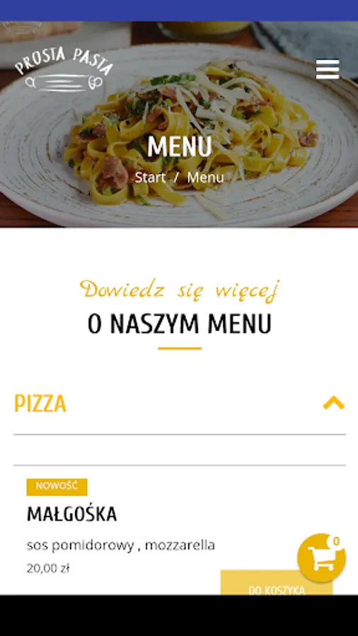 Application for ordering food from Prosta Pasta restaurant in Warsaw.