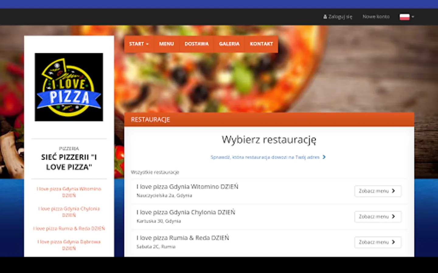 An app for ordering food from the I Love Pizza restaurant. Gdańsk, Gdynia, Rumia, Reda.