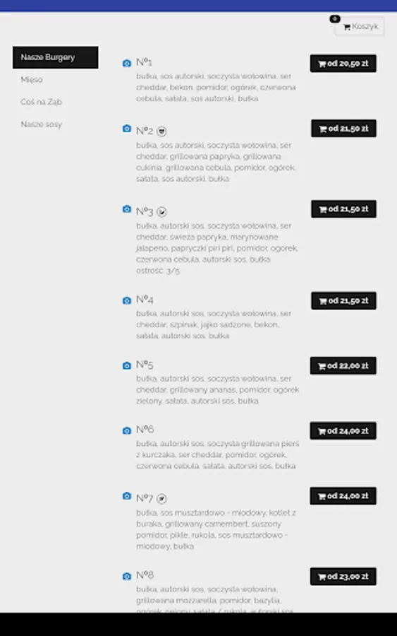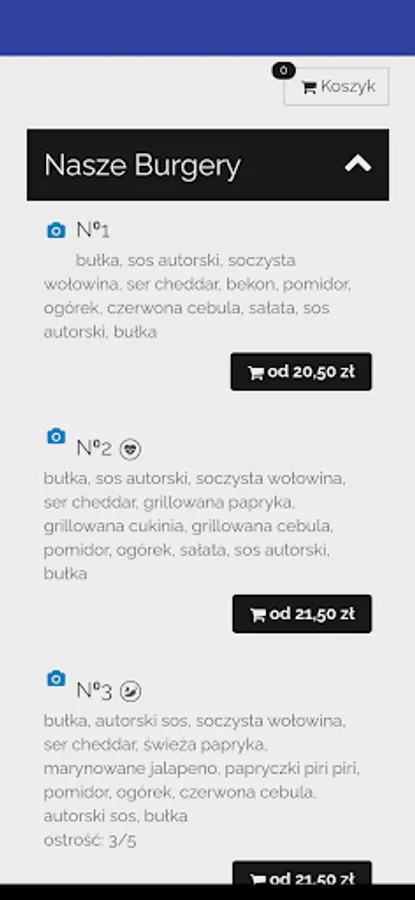 An application for ordering food from the Skrzydlaty Bull restaurant in Zabrze.