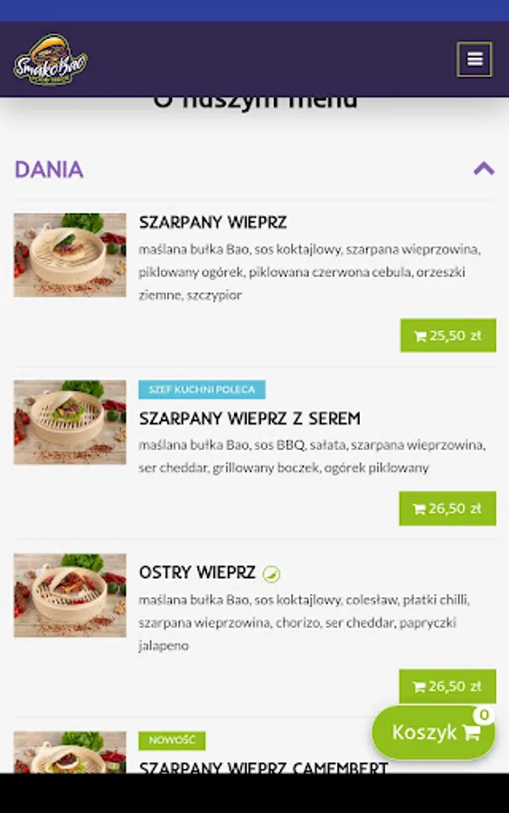 Application for ordering food from the SmakoBao restaurant in Opole.