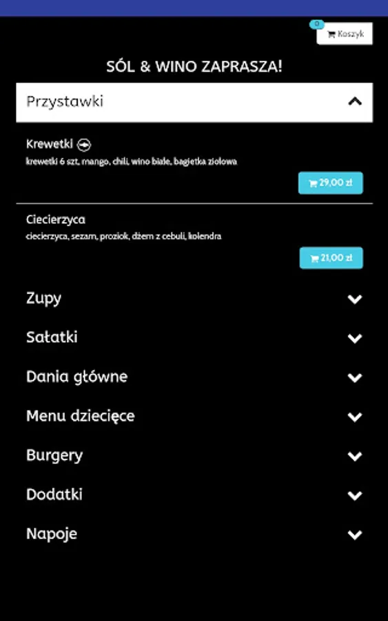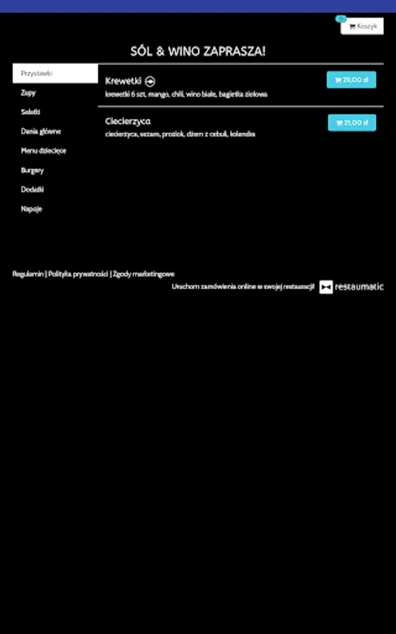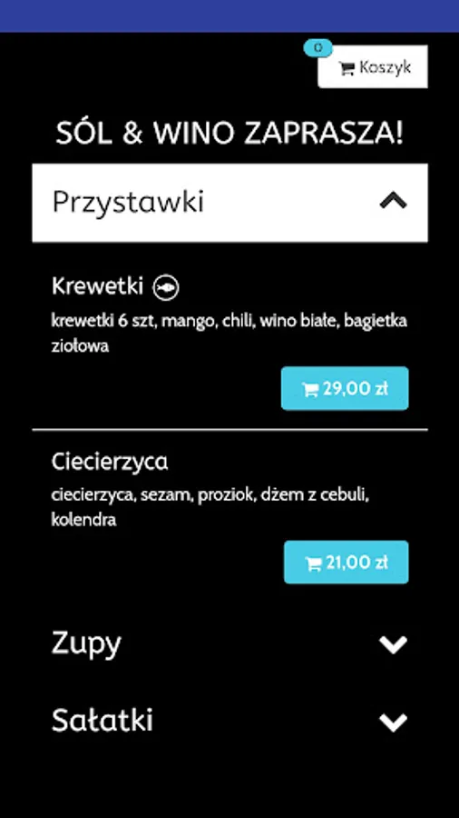 Application for ordering food from the Sól & Wino restaurant in Mielec.