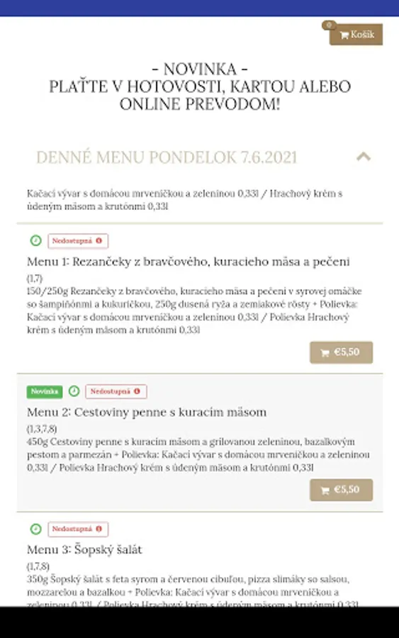 Mobile application to order food directly from the restaurant Restaurant Soprano.