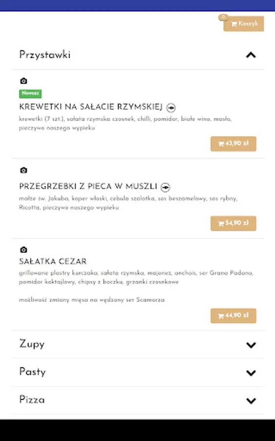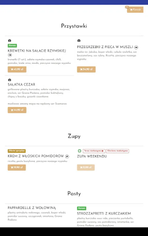 An application for ordering food from the Stara Fabryka restaurant in Kobyla Góra.