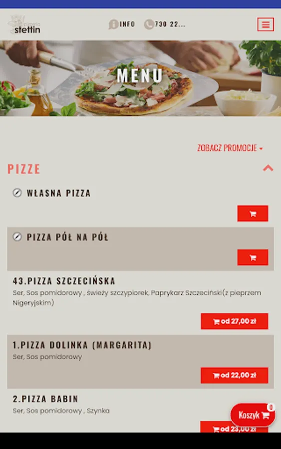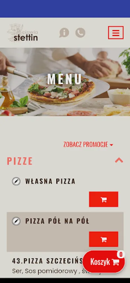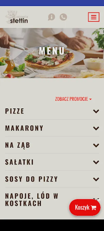 Application for ordering food from the Stettin restaurant in Szczecin.