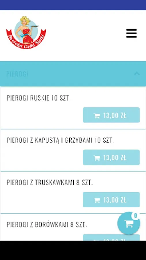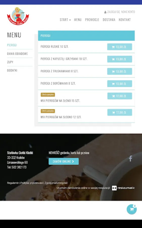 Application for ordering food from the Stołówka Ciotka Klotki restaurant in Kraków.