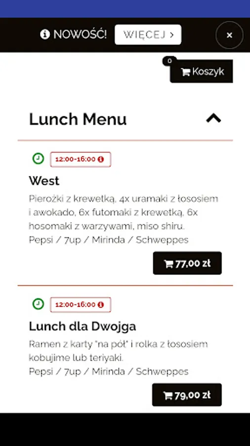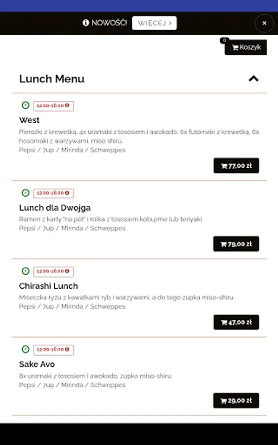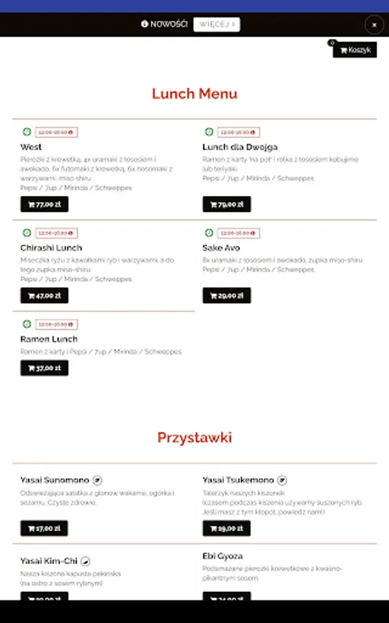 An application for ordering food from the Sushiya restaurant in Kielce.