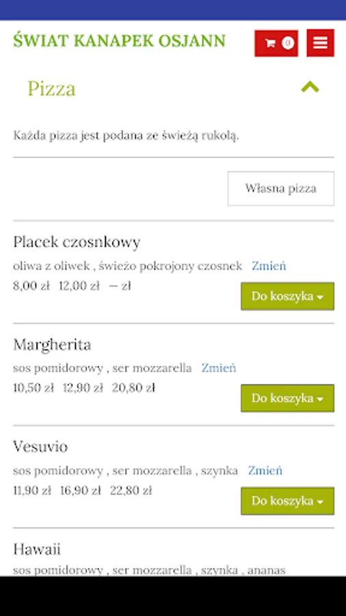 Application for ordering food from the Świat Kanapek Osjann restaurant in Biała Podlaska.