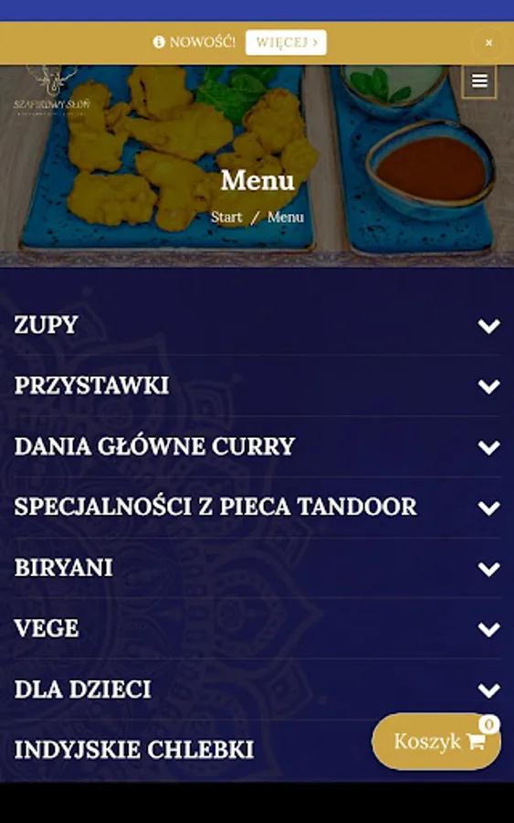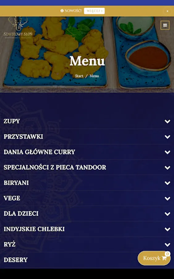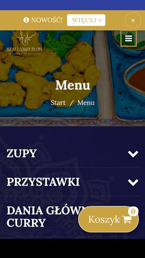 Application for ordering food from the Szafirowy Słoń restaurant in Tychy.