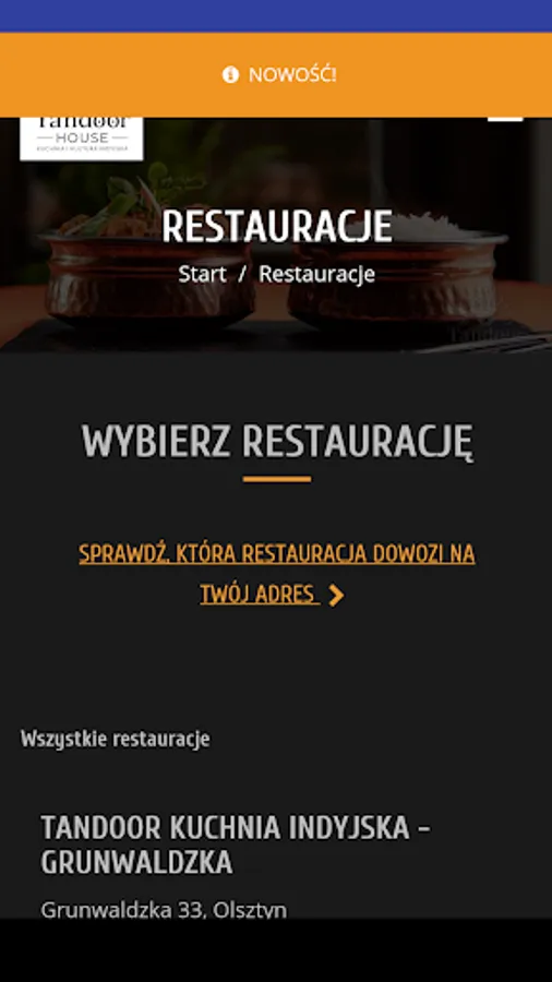 Application for ordering food from the Tandoor Indian Cuisine restaurant in Olsztyn.