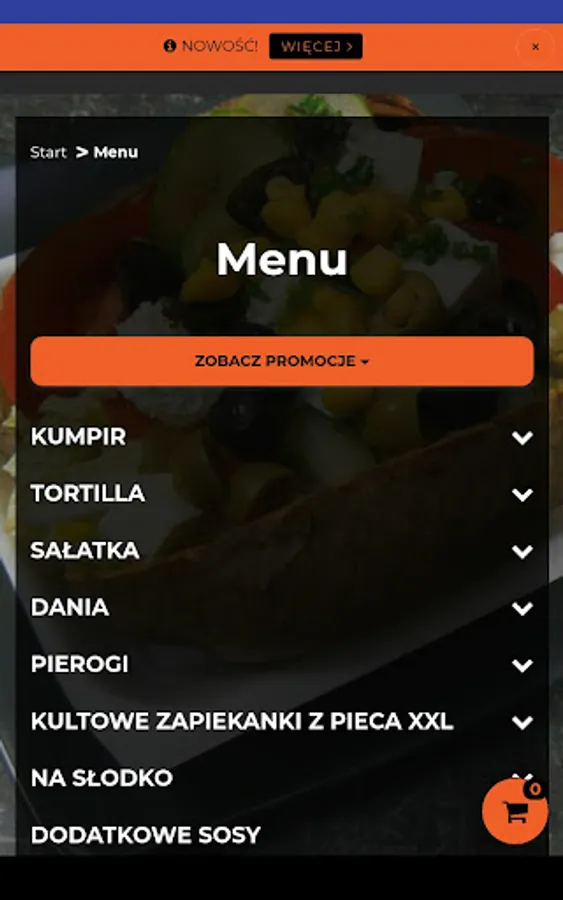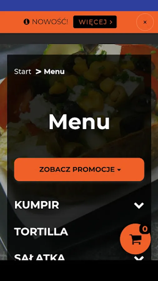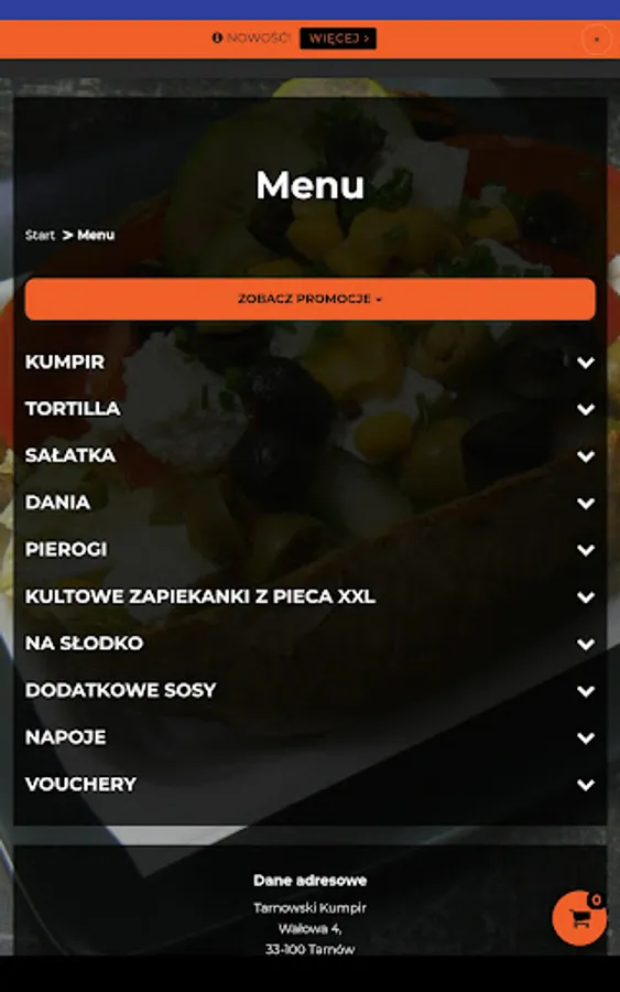 Application for ordering food from the Tarnowski Kumpir restaurant in Tarnów.